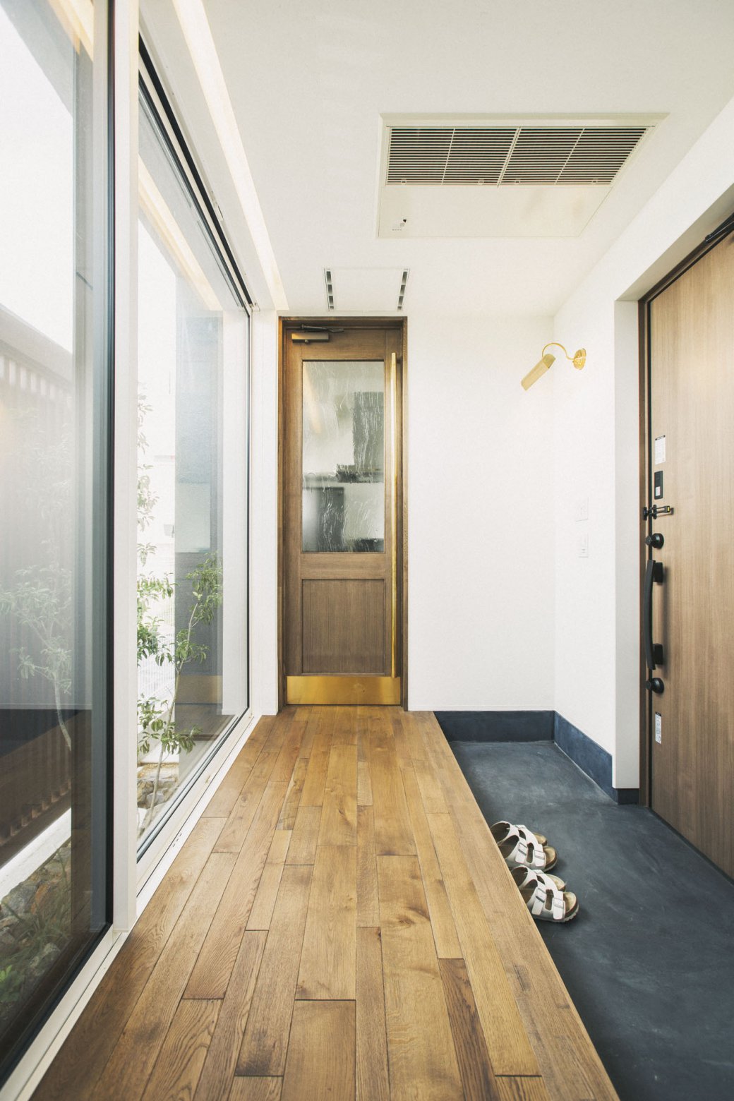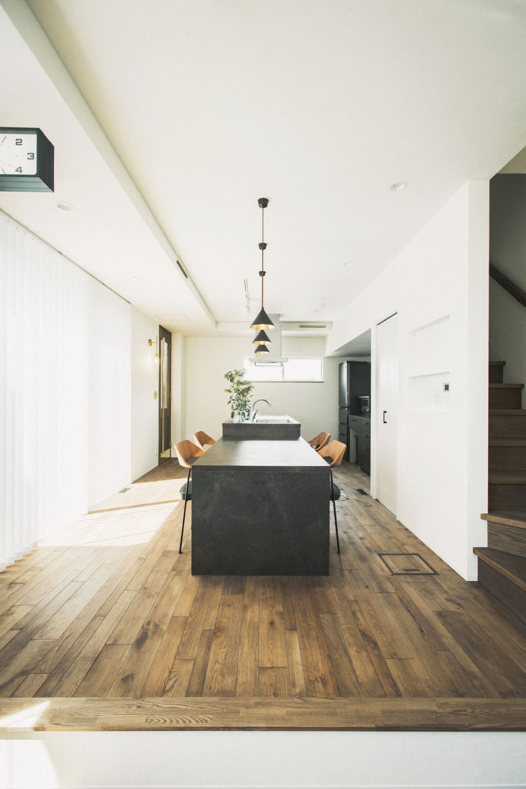 オークはほどよく堅く、傷にも強いです。色は落ち着いた雰囲気を出したかったので、LDKは“エボニー”という深いブラウンを選びました。ウォルナットのような重厚感があって、空間全体に安心感が生まれます。