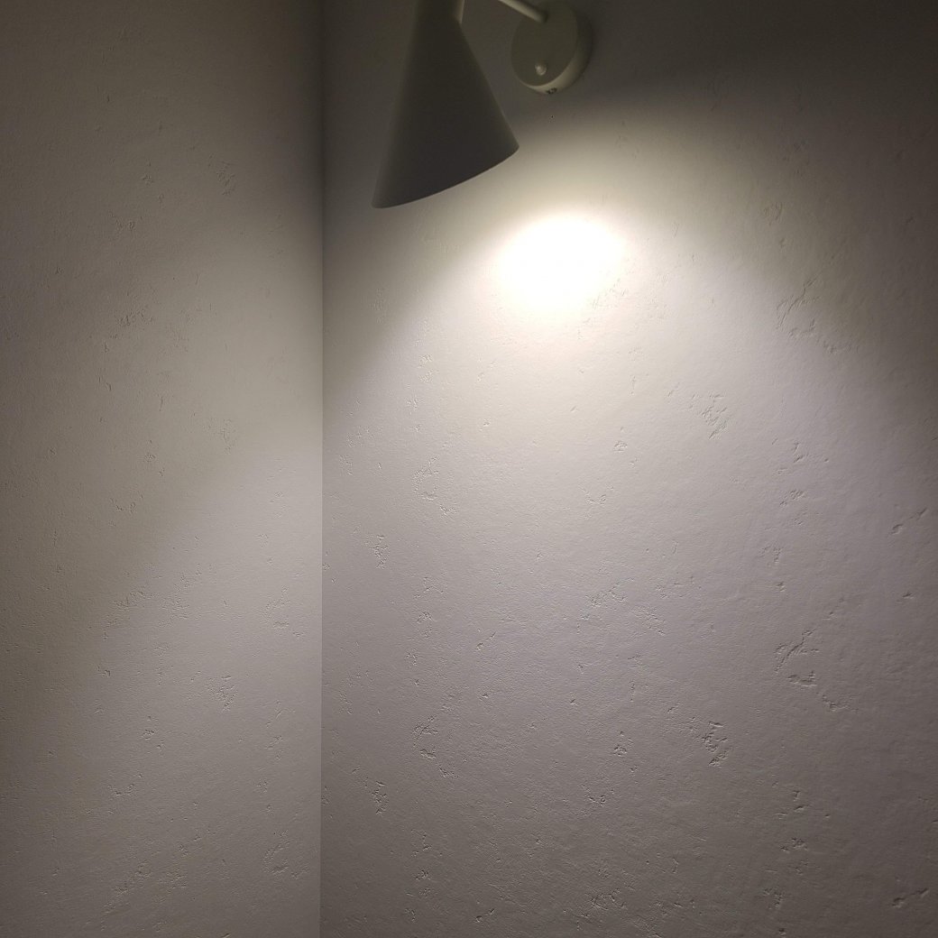 夜、照明にあたると陰影が生まれて、漆喰調クロスの模様がぐっとリアルに浮かび上がるのもお気に入りのポイント。打合せのときには気づきにくい“家の表情”に、住んでみてから出会うことができました。