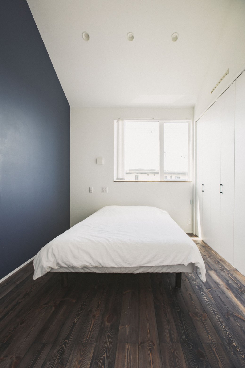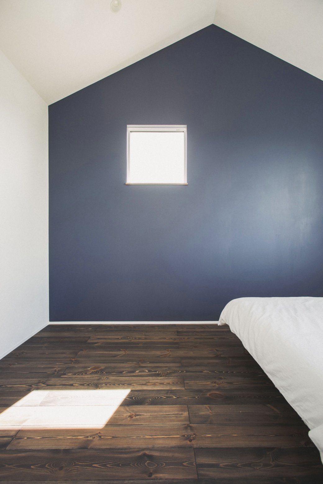 その体験が、わたしたちの寝室のイメージづくりのヒントに。天井をあえて斜めにして、照明もダウンライトとは別に枕元を静かに照らす器具を計画しました。壁や床の色味は、旅館のように落ち着いたトーンで統一して、夜に過ごす空間としての“静けさ”を大切に。