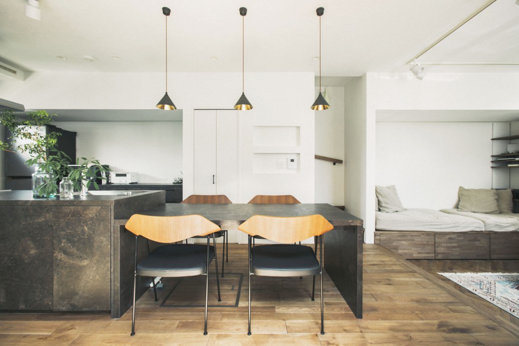 グラフテクトは見た目の美しさだけじゃなく、使い勝手もしっかり考えられていて、毎日の料理もどこか気分が上がる。カップボードやダイニングテーブルなど、周辺家具も同じデザインで揃えられるので、LDKに一体感が生まれます。