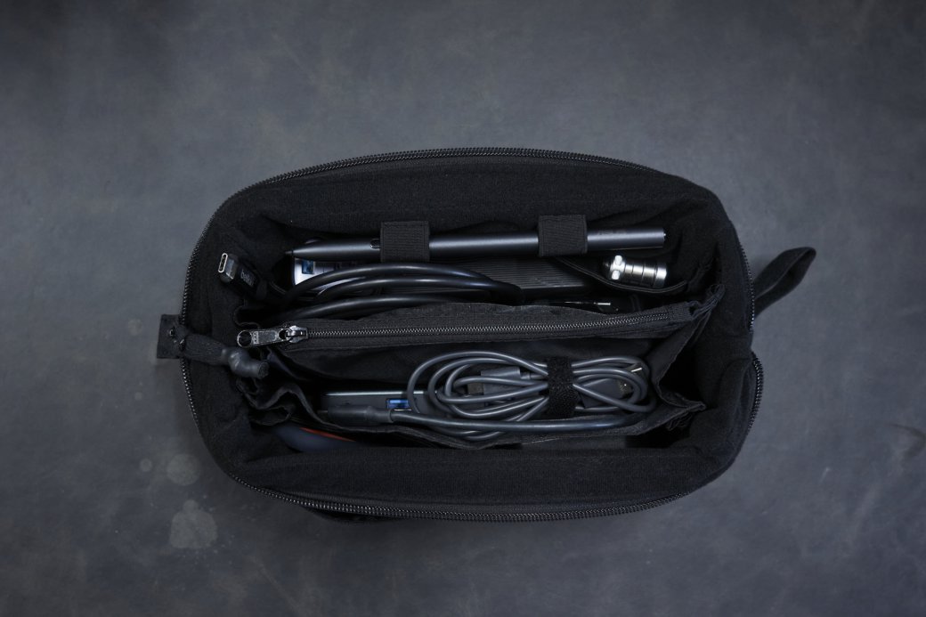 +で細かいものをまとめて収納できるガジェットポーチ。