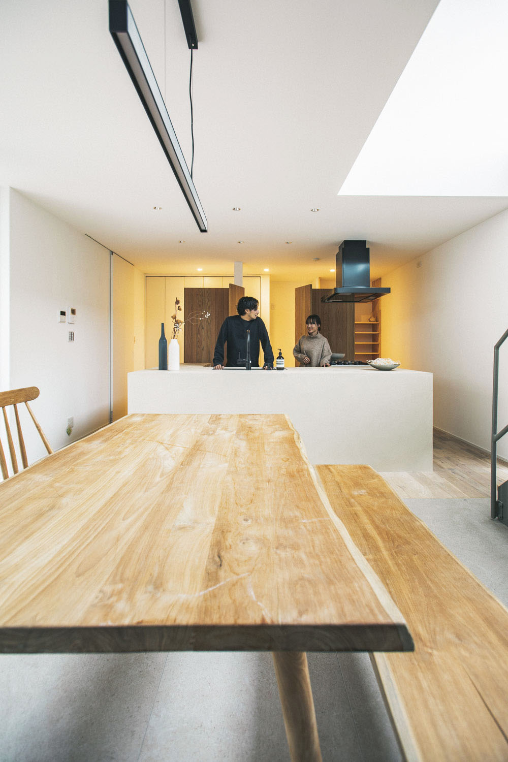 キッチンが壁に囲まれていないため、より広々とした空間を演出します。