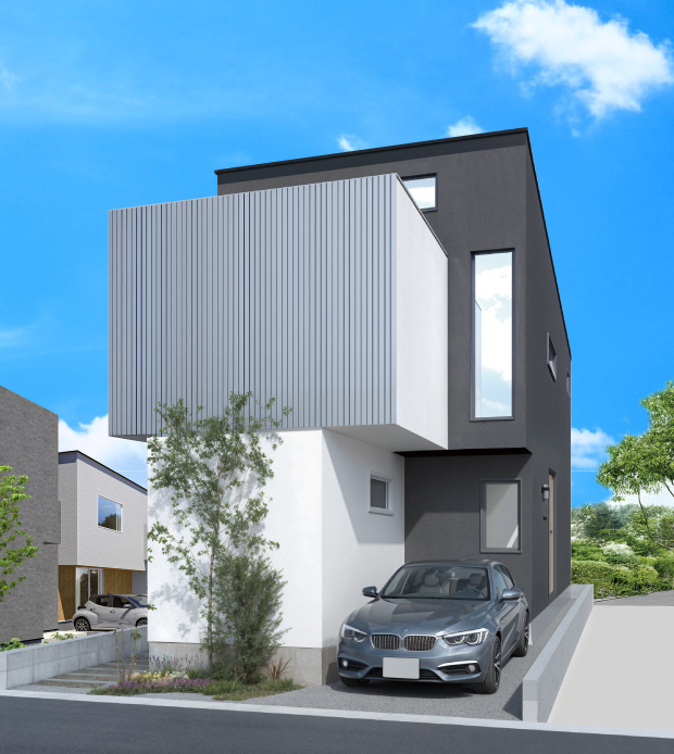 そして、白と黒のコントラストが映える塗り壁の外観。