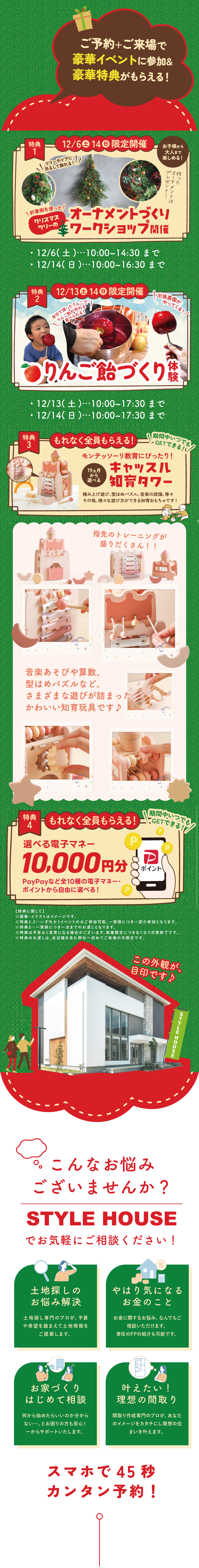 【期間限定!電子マネー10.000円プレゼント!】【ウェルビーみのお店】冬のわくわく住まい探しフェア!りんご飴やツリーづくり、モンテッソーリ推奨のおもちゃなど盛りだくさん♪