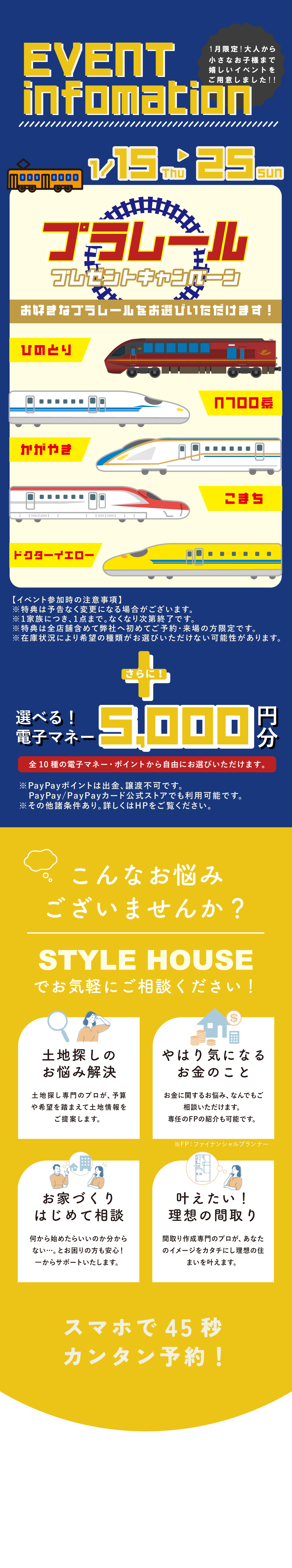 【Web限定✨ご予約・来場で電子マネー5.000円プレゼント!】冬のお家さがしフェア開催!!のりもの大集合|プラレールプレゼントキャンペーン実施!in花博記念公園ハウジングガーデン