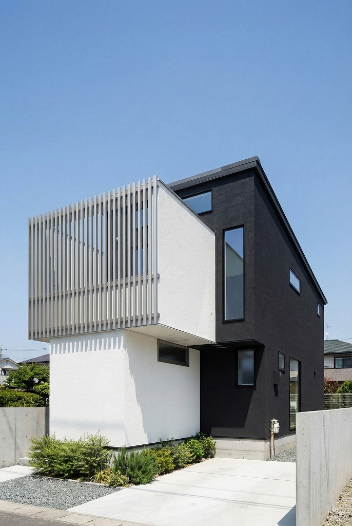 そして、白と黒のコントラストが映える塗り壁の外観。