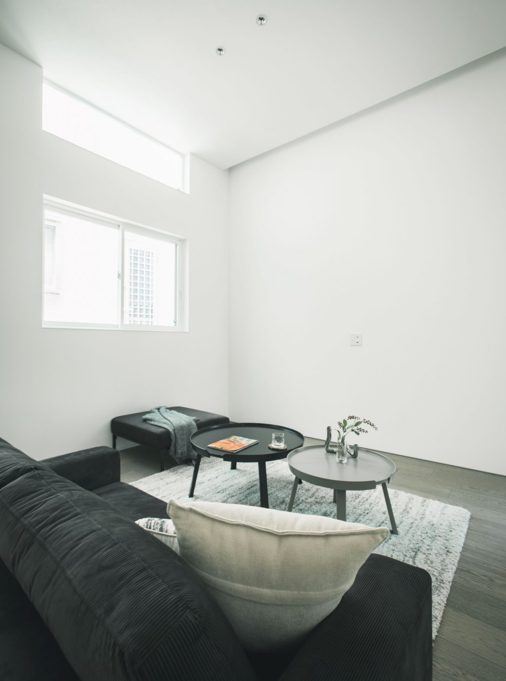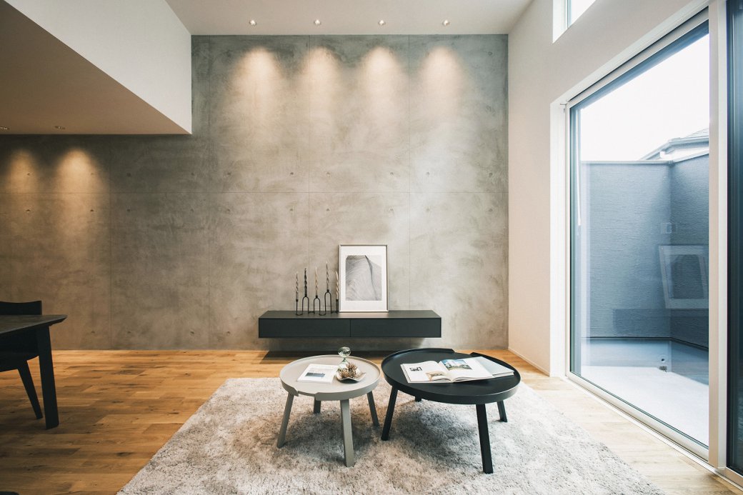 外壁には塗り壁の「オメガ」とKMEWの無垢の建築素材「SOLID」 2つの素材を用いて重厚感と質感あふれる佇まいを演出。 シャープな質感が、モダンで印象的な佇まいを演出し、 光や影の表情が変わるたびに、外観だけでもワクワクする特別感を 感じられます。 スタイリッシュな見た目はもちろん、耐久性や機能性も備え 長く美しさをキープしデザインも機能も妥協しない、 毎日の暮らしが心地よくなる家です。