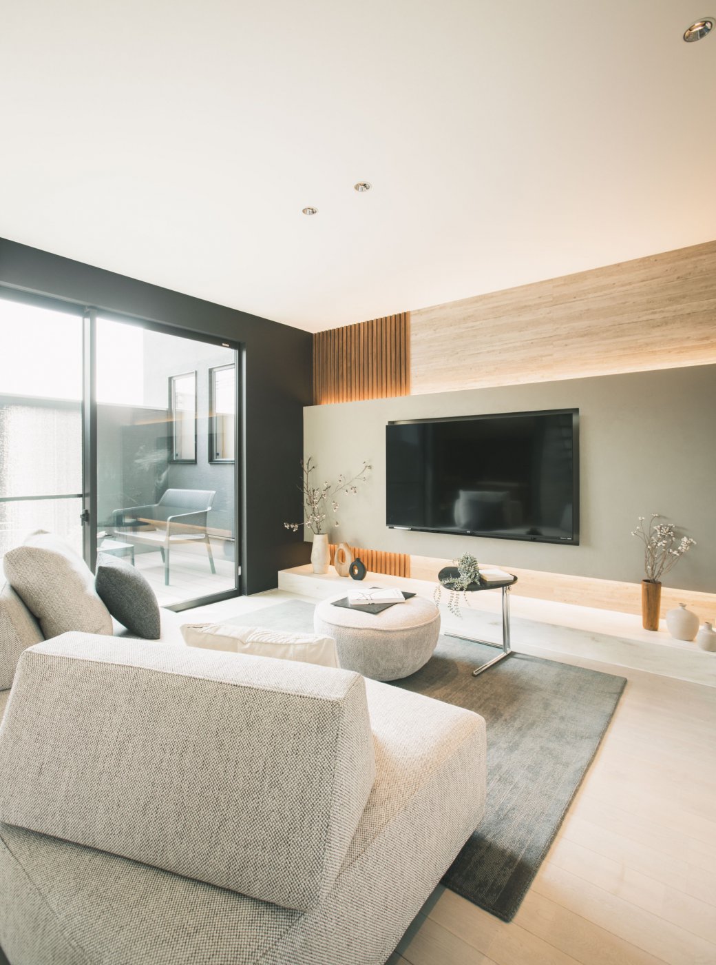 外とやさしく距離を取りながら、自然の気配を住まいの中へ取り込むモデルハウス。 内と外がゆるやかにつながる空間が、日常に穏やかな時間をもたらす住まいをお楽しみください。