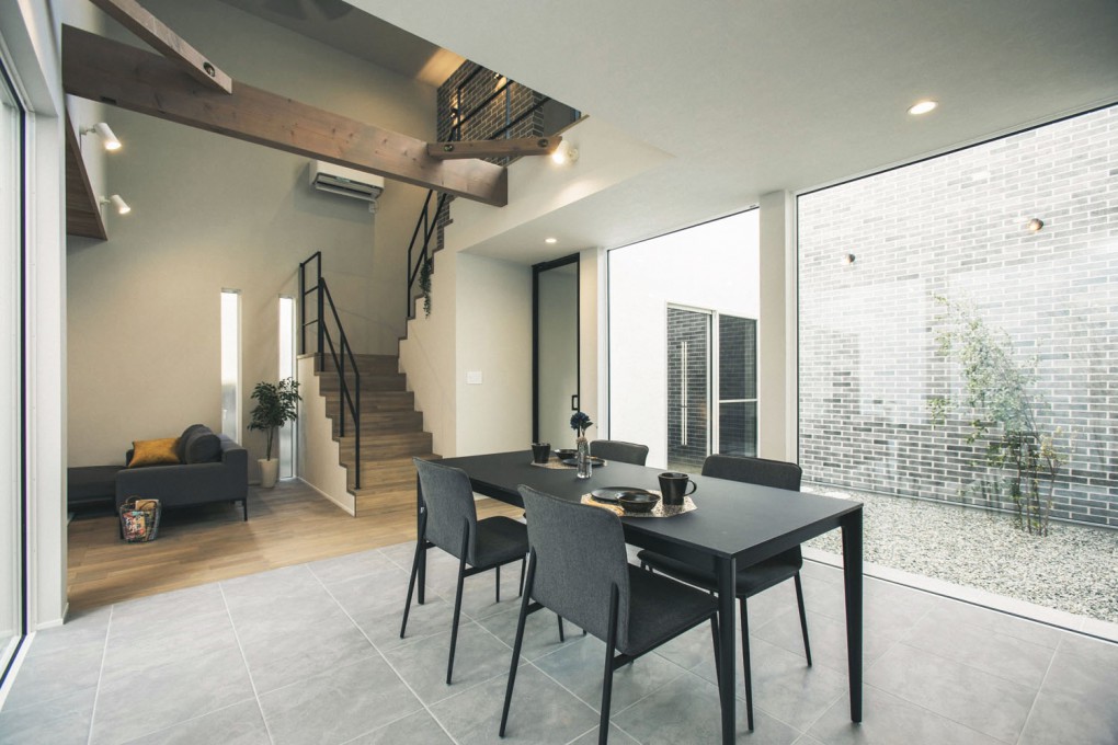 特徴の1つである「2つの中庭」がお家全体の開放感を大幅に向上させている。